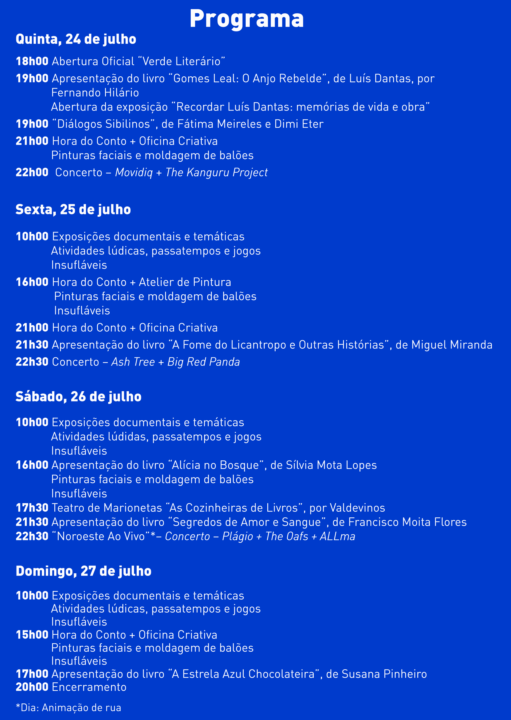 Do programa destaca-se a apresentação de livros, sessões de autógrafos, concertos e inúmeras iniciativas direcionadas para as crianças e familiares.