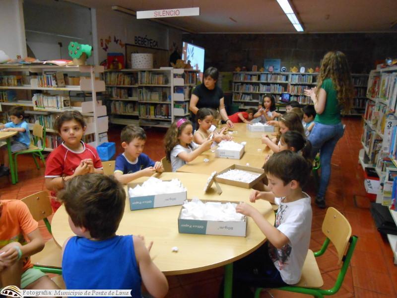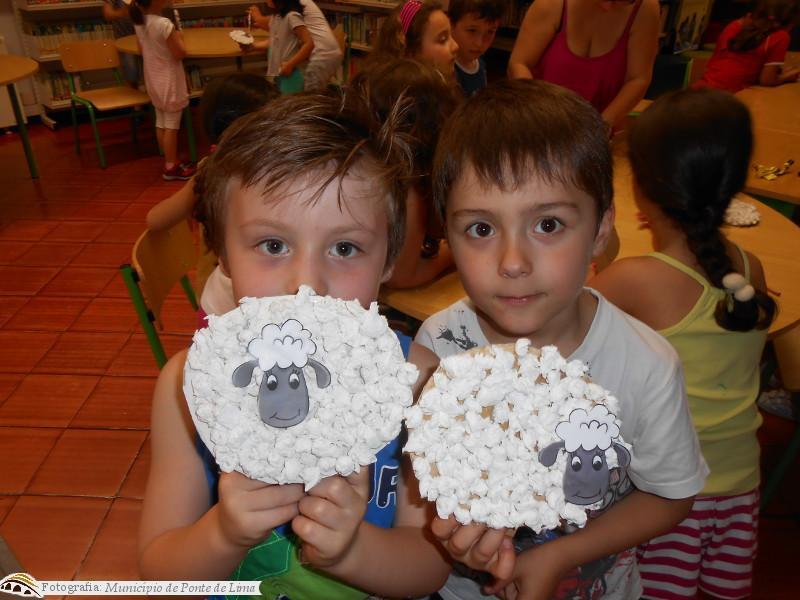 De seguida, realizou-se um atelier criativo onde todos os participantes construíram a personagem principal da história - ovelhinha Catarina, com materiais reciclados de papel e cartão.