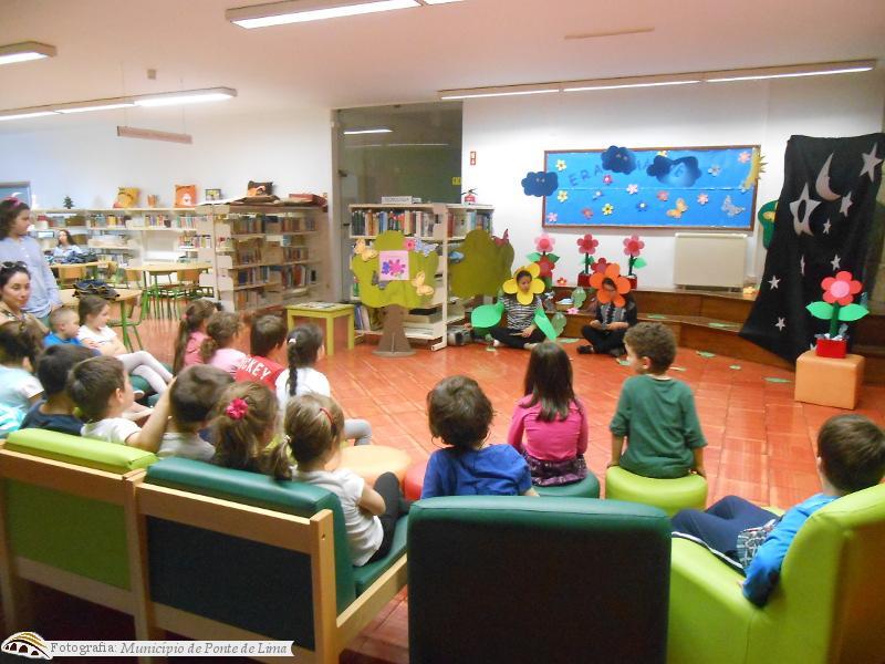 A animação da leitura foi efetuada em torno do livro "A flor e a borboleta", da autoria de Coby Hol, acompanhada ao som de música que conduziu as crianças para um mundo mágico, repleto de fantasia e mistério.