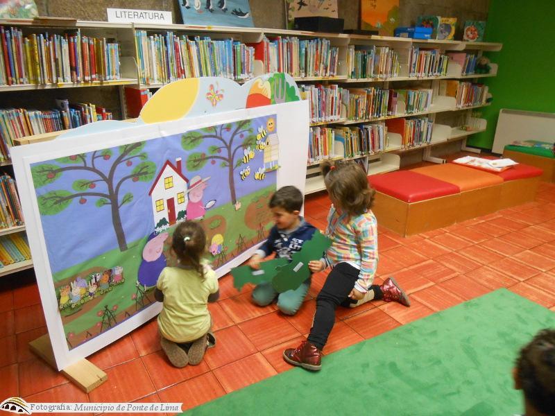 Nesta sessão os mais pequenos tornaram-se participantes e foram colocando as personagens da história num painel colorido, dando vida à horta do avô porquinho. Descobriram a Peppa e mostraram-nos bichinhos engraçados como os caracóis e as abelhas.