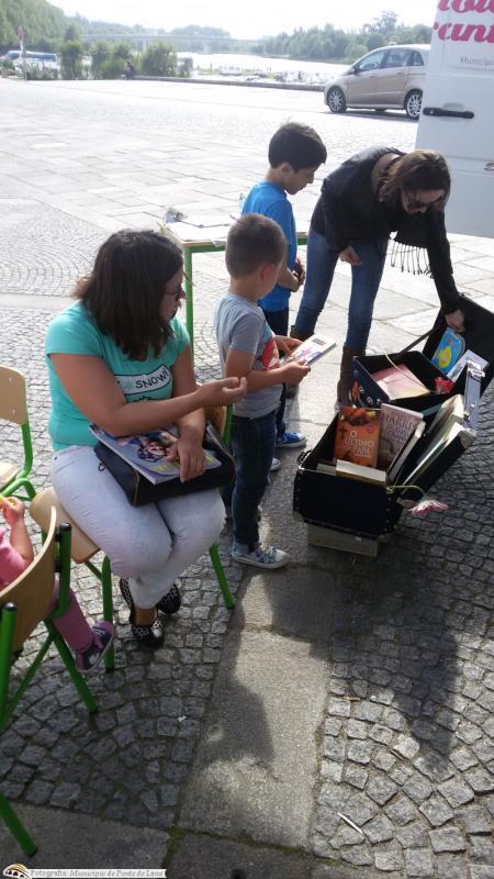 A iniciativa "Livros sobre rodas", inserida na semana comemorativa do Dia Mundial do Livro, foi bem acolhida pela generalidade dos transeuntes, que quis visitar a Biblioteca Itinerante, estacionada no Largo de Camões, e usufruir do programa preparado para o efeito. Ao longo do dia, os visitantes puderam consultar jornais e revistas - sentados em bancos de jardim ou em esplanadas - , folhear e/ou requisitar livros e recolher informações acerca dos eventos a promover pela Biblioteca Municipal de Ponte de Lima.