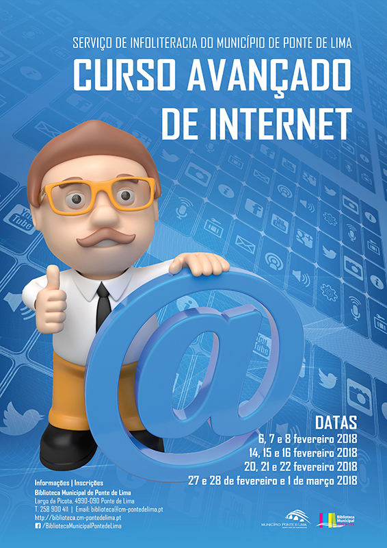 No âmbito do Serviço de Infoliteracia do Município de Ponte de Lima, o IV Curso Avançado de Internet direcionado para o público adulto, está a decorrer entre os dias 6 de fevereiro e 1 de março, das 9h30 às 11h30, no Espaço Internet.
