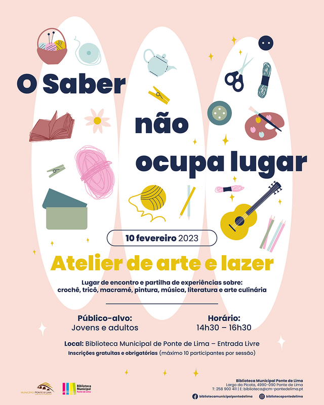 No seguimento do êxito obtido com a primeira sessão do atelier de arte e lazer intitulado “O Saber não ocupa Lugar” o Município de Ponte de Lima vai dar continuidade ao projeto direcionado para jovens e adultos.