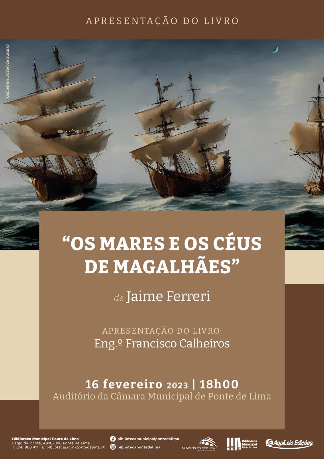 O Município de Ponte de Lima promove a apresentação da obra "Os Mares e os Céus de Magalhães" de Jaime Ferreri, um romance histórico ao qual o autor dedicou largos anos de pesquisa, de modo a verter para a forma ficcional a tese da naturalidade barquense do primeiro navegador a realizar a circum-navegação, de seu nome Fernão de Magalhães.