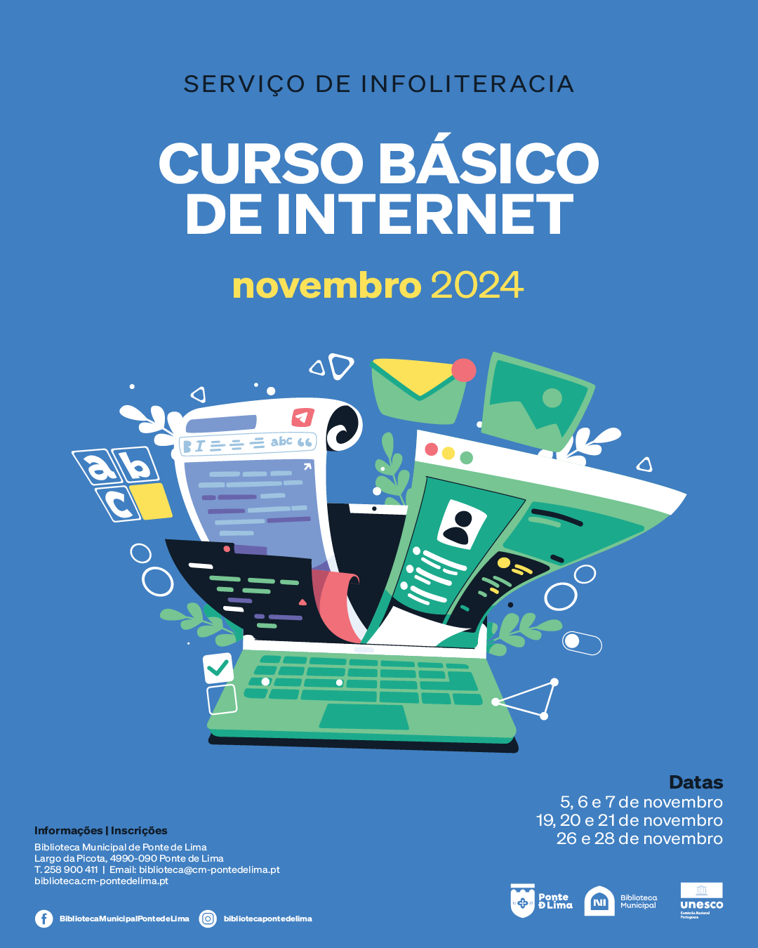 Atendendo à importância do acesso às Tecnologias de Informação e Comunicação (TIC) em todas as idades, e após a contínua aderência e interesse dos munícipes nestes cursos, dinamizados através do Serviço de Infoliteracia, o Município de Ponte de Lima decidiu dar continuidade a um novo ciclo de sessões de informática direcionadas para a população adulta do concelho, valorizando e reforçando o direito à educação ao longo da vida.