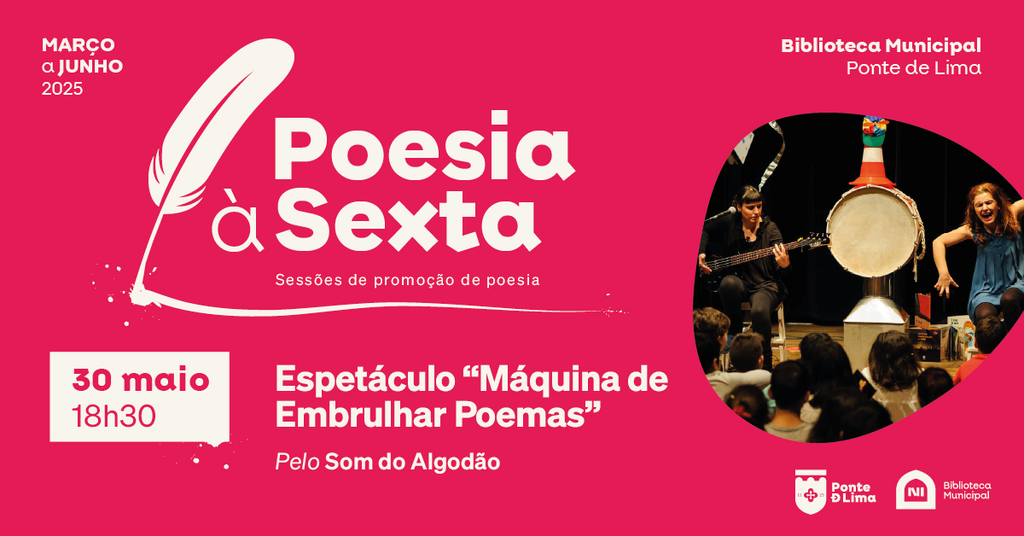 No próximo dia 30 de maio, às 18h30, a Biblioteca Municipal de Ponte de Lima recebe o espetáculo A Máquina de Embrulhar Poemas, uma proposta sensorial e poética do grupo Som do Algodão, dirigida a famílias com crianças a partir dos 3 anos.