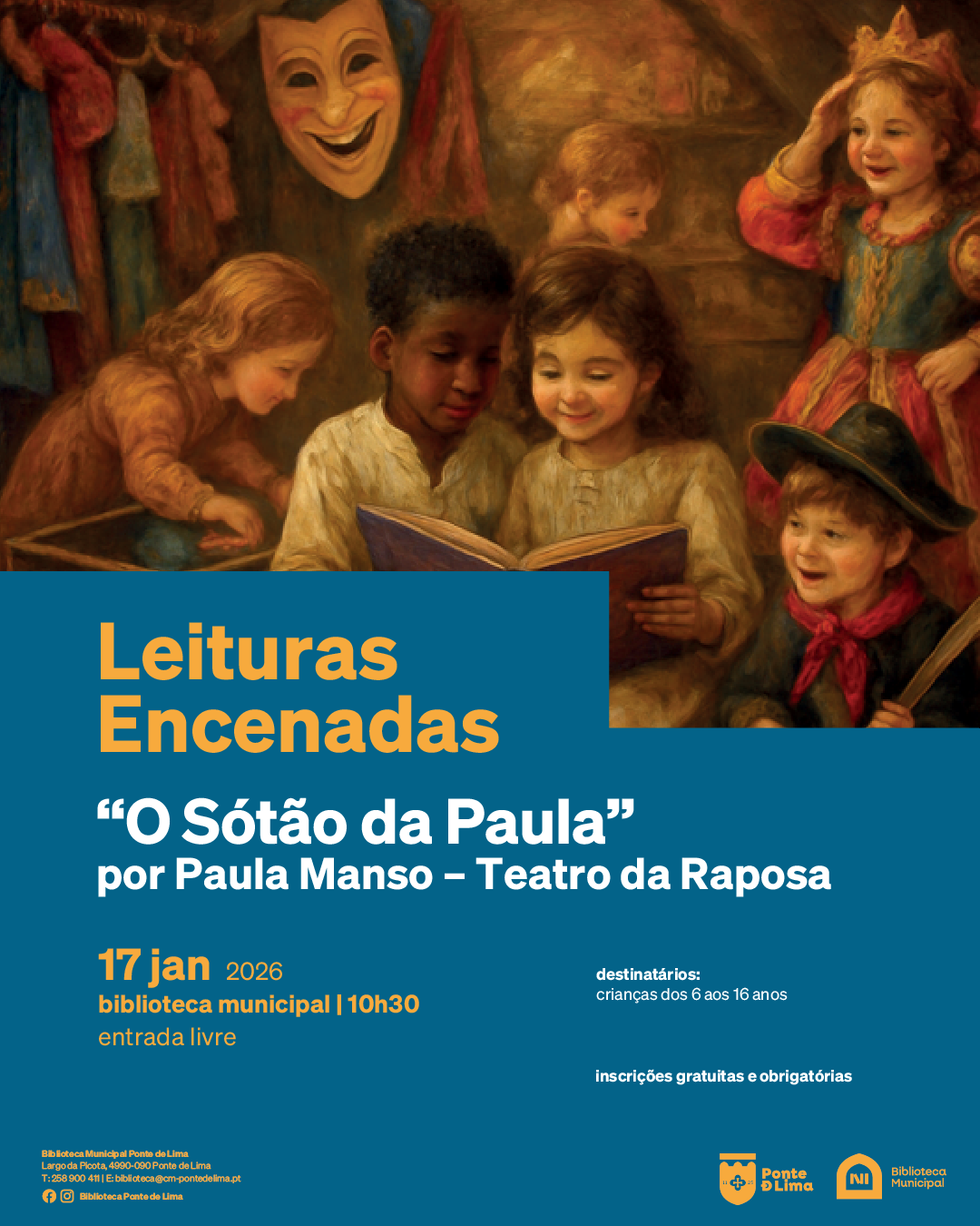 O Município de Ponte de Lima dá continuidade ao programa Leituras Encenadas – O Sótão da Paula, uma iniciativa dirigida a crianças e jovens dos 6 aos 16 anos, que terá lugar no próximo sábado, dia 17 de janeiro, pelas 10h30.