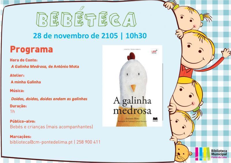 A Bebéteca funciona no último sábado de cada mês, entre as 10.30 horas e as 11.30 horas, na Sala Infantil da Biblioteca Municipal de Ponte de Lima.