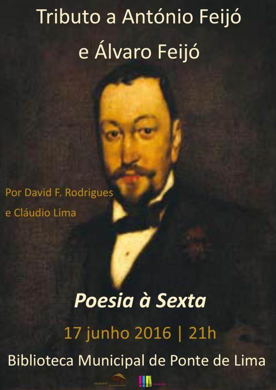 Os poetas António e Álvaro Feijó - duas figuras cimeiras da cultura local - são as personalidades evocadas na próxima edição de Poesia à Sexta - projeto dinamizado pelo Município de Ponte de Lima para promoção daquele género literário.