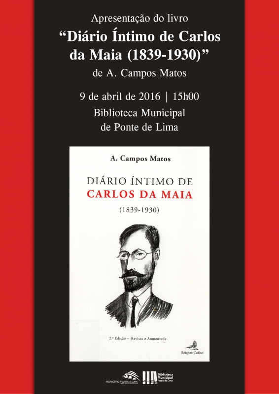 O Município de Ponte de Lima vai promover a apresentação da obra Diário Íntimo de Carlos da Maia (1839-1930), da autoria de A. Campos Matos, no próximo sábado, dia 09 de abril, às 15h, no auditório da Biblioteca Municipal.