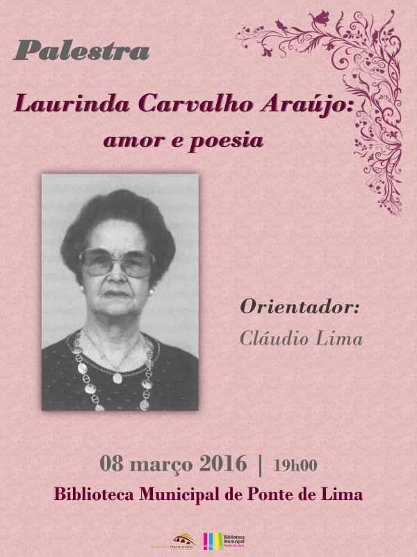 Intitulada Laurinda Carvalho Araújo: amor e poesia, a palestra - inserida no âmbito da mostra biobibliográfica Oito mulheres, oito autoras: exposição de literatura no feminino, patente de 01 de março a 31 de maio na Biblioteca Municipal -, pretende revisitar os principais momentos da vida e obra da escritora, cujo legado é transversalmente relevante para a difusão das Letras e para a valoração da etnografia local.