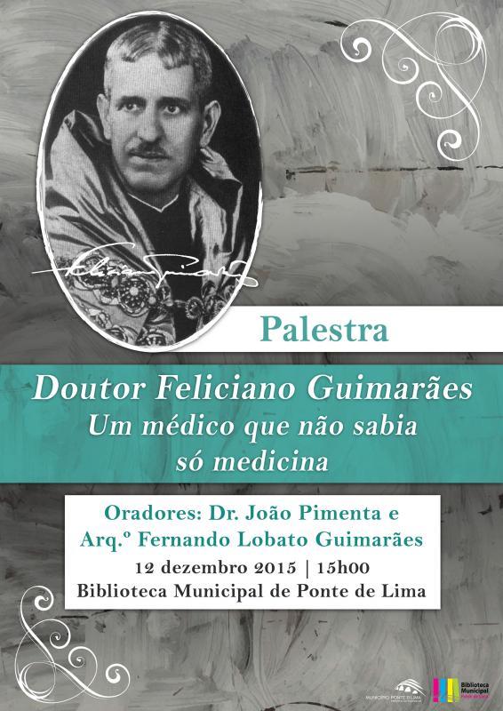 A Biblioteca Municipal de Ponte de Lima vai realizar no próximo dia 12 de dezembro, às 15h00, uma palestra em homenagem ao Doutor Feliciano Guimarães que contará com a participação do Dr. João Pimenta e do Arq.º Fernando Lobato Guimarães.