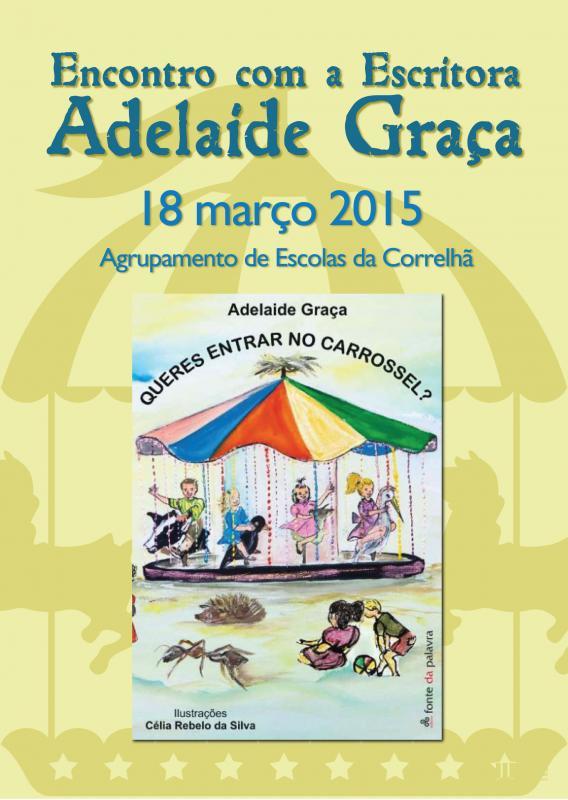 No próximo dia 18 de março a escritora Adelaide Graça estará presente no agrupamento de escolas da Correlhã, mais especificamente nos Centros Educativos da Facha e da Correlhã, para apresentar o seu mais recente livro intitulado "Queres entrar no Carrossel?".
